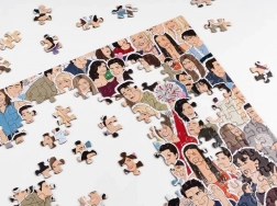 Prisjetite se omiljenih scena iz serije Prijatelji s prekrasnom ilustracijom australske autorice Chantel de Sousa. Detaljno izrađena kolažna kompozicija donosi trenutke poput purice sa sunčanim naočalama i fezom, ludog plesa ili spontane svadbe u Vegasu.