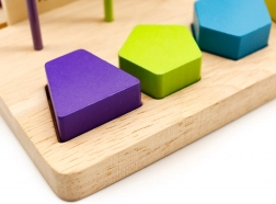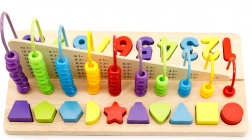 Osim brojanice, u setu se nalaze i šareni drveni oblici i brojevi. Potiče prepoznavanje oblika i orijentaciju u brojkama.