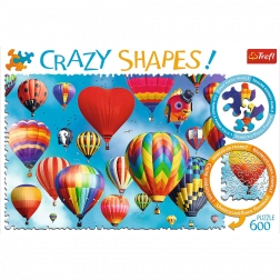 Crazy Shapes! Ova serija predstavlja najluđe puzzle na svijetu, gdje dijelovi imaju neobičan, ludi oblik i nema ravnih linija. Proizvod sadrži 600 dijelova, a slika prikazuje leteće šarene balone.