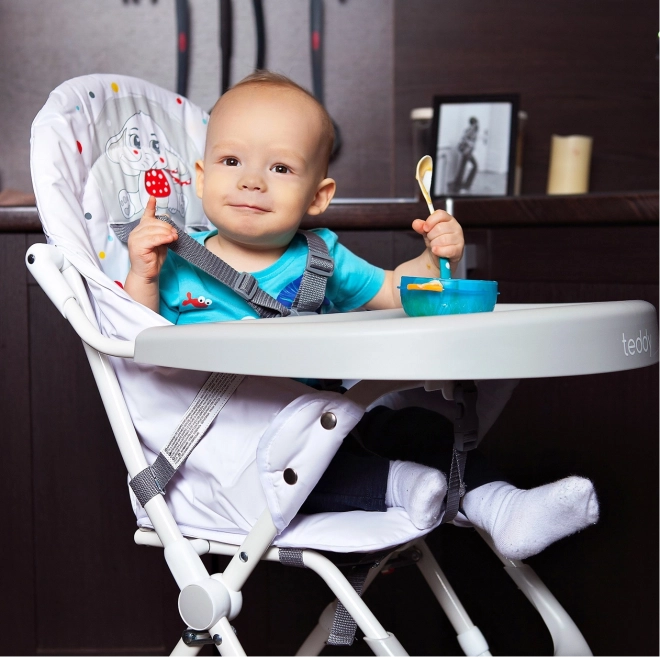 Sklopiva dječja hranilica CHIPOLINO Teddy lagan je i siguran izbor za svakodnevno hranjenje i prve kašice. Nudi široko i udobno sjedalo, 5-točkasti sigurnosni pojas, prostranu plohu/stolić i jednostavno čišćenje. Zahvaljujući kompaktnom sklapanju brzo je pospremite i u male prostore.