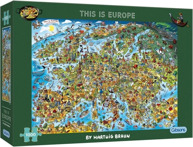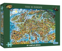 Uživajte u satima zabave s kvalitetnim puzzleom To je Europa renomiranog britanskog proizvođača GIBSONS. Zahvaljujući preciznom izrezu i čvrstim dijelovima sve se glatko uklapa, što slaganje čini ugodnim i za početnike i za iskusne ljubitelje slagalica.