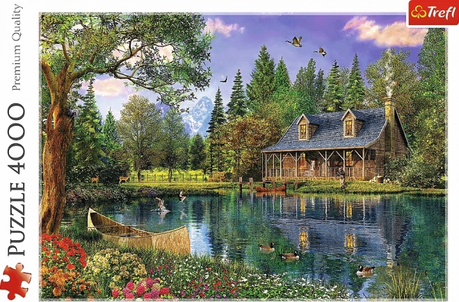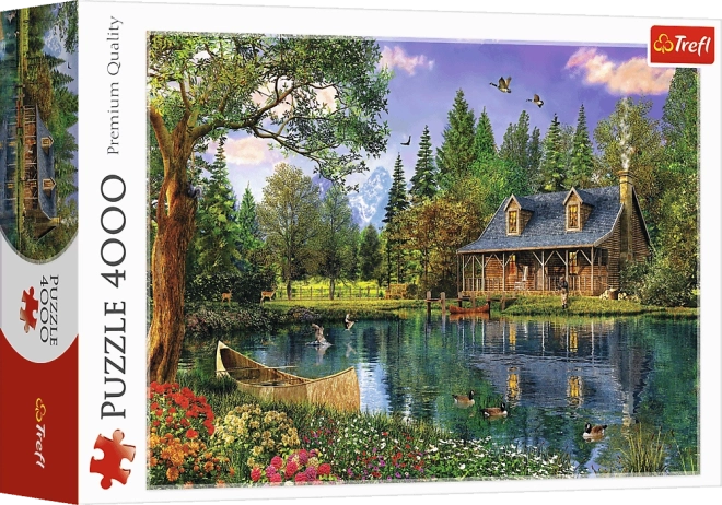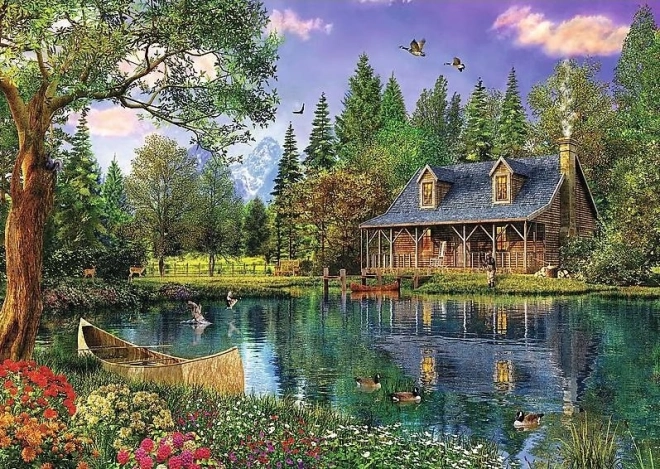 Uživajte u mirnoj atmosferi prirode uz velikoformatne puzzle koje prikazuju drvenu kolibu uz mirno jezero okruženo drvećem i divljinom. Nakon slaganja nastaje detaljna slika dimenzija 136 × 96 cm – idealna za uokvirivanje i ukrašavanje interijera.