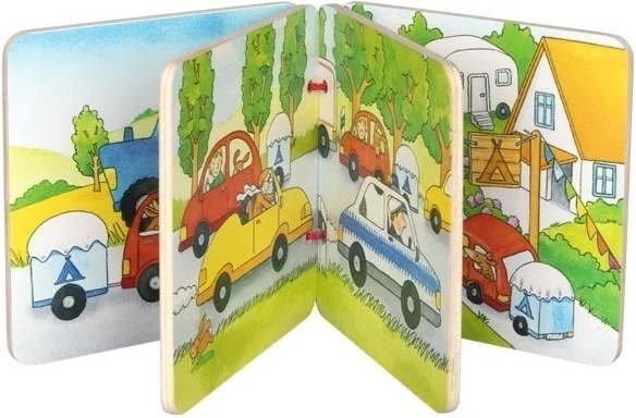 Preslatka drvena slikovnica od GOKI s osam scena iz obiteljskog izleta i motivom crvenog automobila. Potaknut će dječju maštu, podržati razvoj govora i učenje kroz igru. Kompaktna veličina 10 × 10 × 1,6 cm idealna je za putovanja.