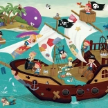 Ova detektivska slagalica iz serije Educa spaja zabavu s tajanstvenim istraživanjem. Najprije složite cijelu sliku gusarskog broda, dimenzija približno 48 x 28 cm. Zatim se djeca mogu upustiti u avanturu traženja 30 skrivenih predmeta. Ilustrirani pregled pomoći će vam otkriti sve te predmete.