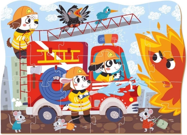 Podržite finu motoriku, logičko razmišljanje i koncentraciju uz kvalitetno ilustrirane dječje puzzle s vatrogasnom tematikom. Zahvaljujući obrisnom rubu djeca se lakše snađu i brže steknu sigurnost u slaganju. Nakon dovršetka motiv je moguće povezati s drugim slikama iz serije prijevoz (farma, svemir, gradilište i dr.) te stvoriti vlastiti svijet prijevoznih sredstava.