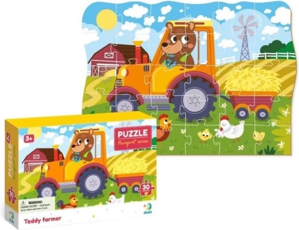 Otkrijte čaroliju serije DODO Promet s motivom farmera. Ove puzzle od 30 dijelova razvijaju finu motoriku, koncentraciju i maštu dok djeca slažu šarenu scenu s farme. Zahvaljujući obrubnom rubu male se ruke lakše snađu, a slaganje je užitak od prvog dijela.