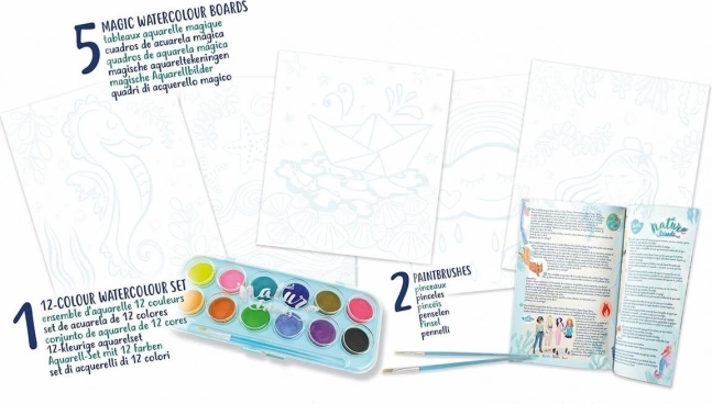 - 12 vodenih boja i 2 kista – kompletna oprema u jednom pakiranju
