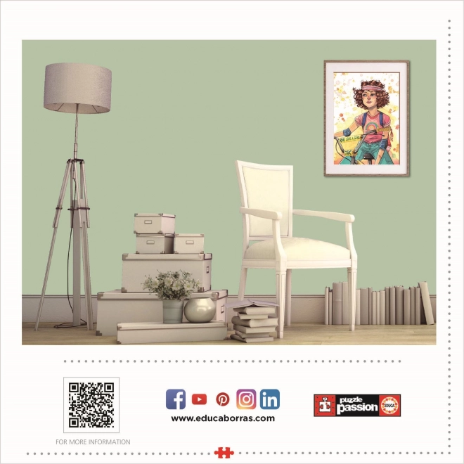 Stilski EDUCA puzzle „Voziti kao cura” donosi radost slaganja i motivirajuću temu. Zahvaljujući 500 precizno izrezanih dijelova uživat ćete u ugodnom izazovu koji razvija strpljenje, opažanje i smiruje um. U pakiranju se nalazi praktično ljepilo FIX PUZZLE, pa ćete gotov rad lako sačuvati.