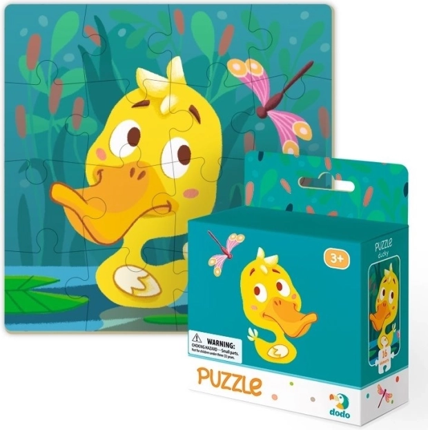 Preslatke dječje puzzle s motivom pačića nude 16 dijelova, a nakon slaganja imaju dimenzije približno 22 × 22 cm — kvalitetan brend DODO.