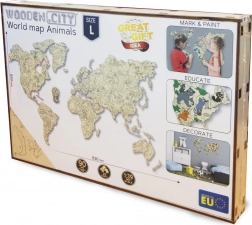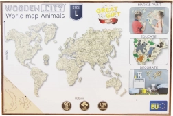 Drvena životinjska karta svijeta idealno je rješenje za ljubitelje putovanja i kao edukativno pomagalo za djecu. Pomaže razviti interes za geografiju i zoologiju te omogućuje djeci bojanje posjećenih mjesta s obitelji akrilnim bojama.