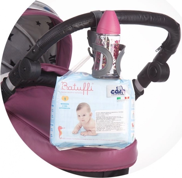 Promišljena izrada osigurava stabilnost napitka i pri duljim vožnjama te trenutačan pristup potrepštinama vašeg djeteta. Crna izvedba pristaje svakim kolicima, a poklon pakiranje razveselit će i kao praktičan dar za nove roditelje.