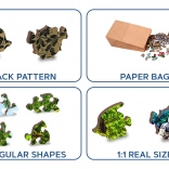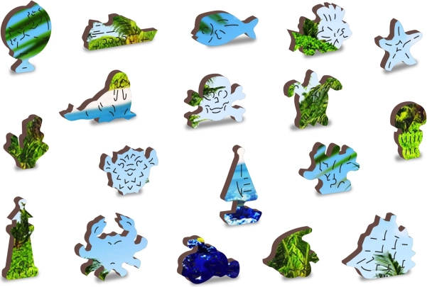 Posebno oblikovani dijelovi – uključujući motive životinja i predmeta – imaju precizno laserom naglašene detalje i neke se mogu postaviti kao male figurice. Puzzle su dizajnirane s naglaskom na glatke rubove bez iverja i dug vijek trajanja.