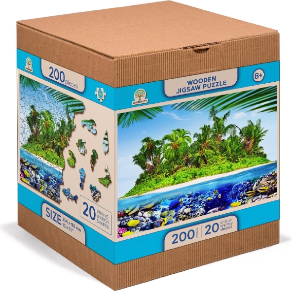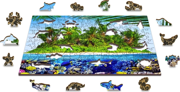 Otkrijte zabavu i izazov s dvostranim drvenim puzzlama 2u1 s motivom egzotičnog otoka. Zahvaljujući laserski izrezanim, jedinstveno oblikovanim dijelovima u obliku životinja i predmeta, puzzle nude višu razinu težine, glatke rubove i ekološku izvedbu bez plastike.