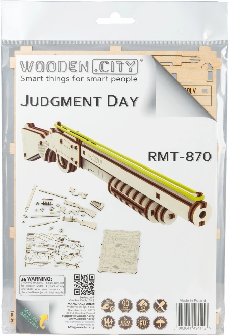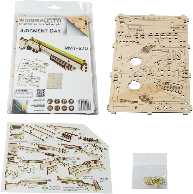 Sastavite autentičan model oružja koji puca gumicama i ima izrađene detalje kao što su osigurač i spremnik za metke. Model se lako sastavlja zahvaljujući ekološkim drvenim materijalima i nije potrebno nikakvo ljepilo ili alat.