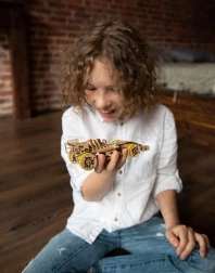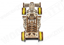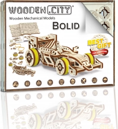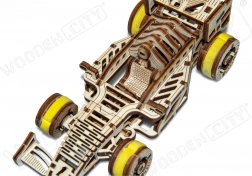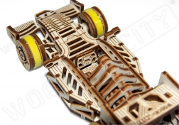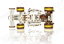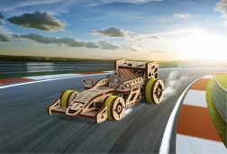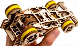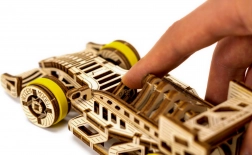 Drveni 3D puzzle Utrka Vožnja od WOODEN CITY je fascinantan dodatak za sve obožavatelje mehanike i trkaćih automobila. Izdvaja se s prednjim okretnim kotačima, zamašnjakom i povratnim kotačićem. Model je opremljen s gumenim motorom koji omogućuje pokretanje automobila do 45 cm s jednim punjenjem.