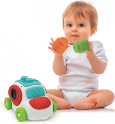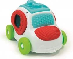 Plastični autić služi kao praktična kutija za pohranu pa se kocke neće izgubiti. Igračka je idealna za rani razvoj i sigurnu senzornu stimulaciju – kocke se mogu koristiti i u vodi te prati u perilici posuđa, što olakšava higijenu i brigu.