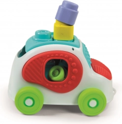 Ovaj šareni umetni autić s mekanim kockama CLEMMY osmišljen je za male istraživače. Djeca mogu kocke sigurno stiskati, slagati u tornjeve i umetati u odgovarajuće otvore na poklopcu, čime razvijaju taktilnu percepciju, koordinaciju oko–ruka i logičko razmišljanje. Mekani, netoksični materijal ugodan je na dodir i lako se održava.