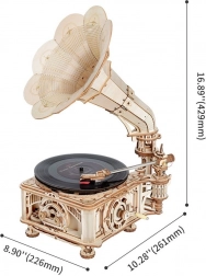 Paket sadrži materijale za sastavljanje modela i vinil ploču s tri melodije za potpuno iskustvo.