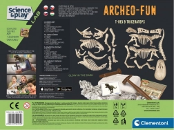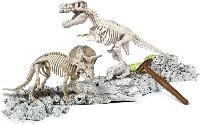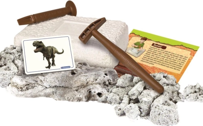 - Kompletna oprema: čekić, dlijeto, blok za iskopavanja, dijelovi kostura T‑Rexa i Triceratopsa, kartice, upute.