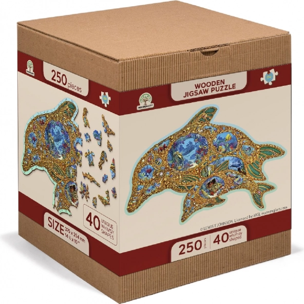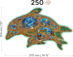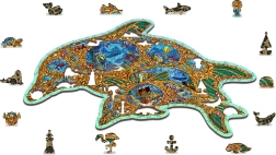Priuštite si originalnu zabavu s drvenim puzzlama u obliku dupina inspiriranog podmorskim svijetom. Zahvaljujući posebno oblikovanim dijelovima – od kojih dio ima oblik morskih životinja – slaganje je vizualno atraktivno i ujedno zahtjevnije nego kod klasičnih puzzli. Laserom naglašeni detalji daju motivu dubinu, a neke dijelove možete postaviti kao male figurice.