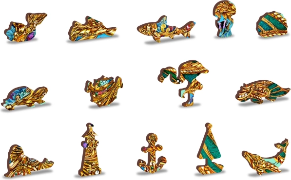 Šareni podmorski dizajn sa specijalnim dijelovima u obliku morskih životinja i biljaka daje slaganju originalnost i radost otkrivanja.