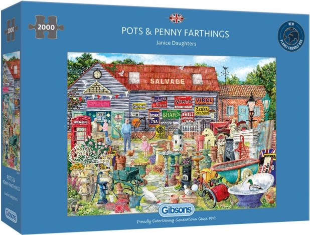 Otkrijte čaroliju nostalgije s velikim puzzleom marke Gibsons – Lonci i starudije za sitniš od 2000 dijelova. Čeka vas detaljno ilustrirana scena dvorišta prepunog blaga koja će oduševiti ljubitelje antikviteta i zahtjevne slagalice. U pakiranju je predložak motiva, a nakon slaganja nastaje kvalitetna, velikog formata slika dimenzija 98 × 68 cm.