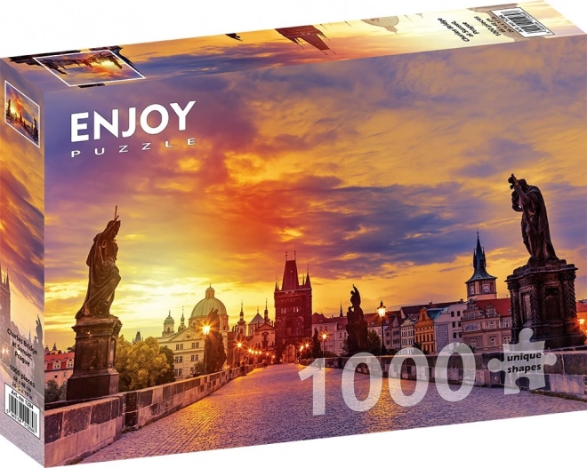 - Motiv Karlova mosta: Jedan od najpoznatijih simbola Praga, prikazan u čarobnim bojama zalaska sunca.