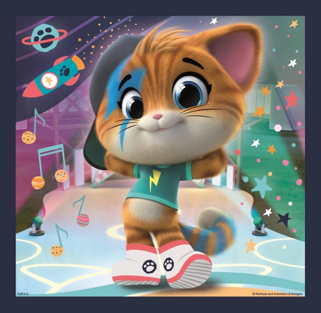 Otkrijte čaroliju slagalica s junacima iz popularne bajke 44 CATS. Set sadrži tri različite puzzle, zahvaljujući kojima djeca vježbaju finu motoriku, uočavanje detalja i strpljenje. Različit broj dijelova omogućuje prilagodbu težine dobi i iskustvu djeteta.