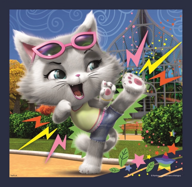 Uživajte u trostrukoj porciji zabave s puzzle setom 3u1 „Upoznaj preslatke mačiće” iz omiljene serije 44 CATS. Tri slagalice s različitim brojem dijelova razveselit će mlađu i stariju djecu i savršene su za braću i sestre – svatko može slagati svoju sliku istovremeno. Kvalitetni materijali i ekološke boje jamče sigurnu i radosnu igru.