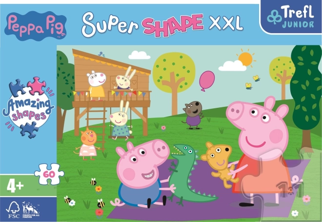 Puzzle Super Shape 60 XXL donose djeci omiljeni motiv PRASE PEPICA u ekstra velikom i preglednom izdanju. Dijelovi su prilagođeni dječjim ručicama, a neki imaju netipične oblike koji čine slaganje zabavnijim i intuitivnijim.