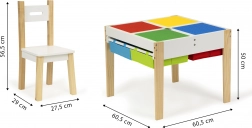 Stvorite djeci vlastiti kreativni kutak sa setom ECOTOYS koji spaja stol za igru i spremišni prostor u jednom. Robusne noge od borovine i izdržljiva MDF ploča osiguravaju stabilnost i dug vijek trajanja. Zahvaljujući čistom skandinavskom dizajnu, set se odlično uklapa u dječju sobu, igraonicu pa čak i čekaonicu.