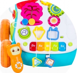 Raznobojni panel reproducira melodije i zvukove, motivira na učenje i igru. Odvojivi mobilni telefon i glazbeni pult mogu se koristiti i zasebno.