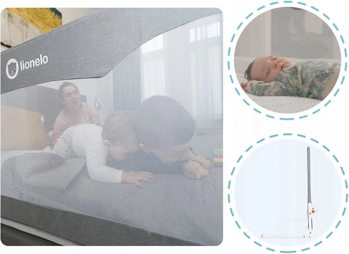Ograda HANNA jedna je od najviših na tržištu, pa odgovara i vrlo visokim madracima. Prozračna mrežica nježna je prema dječjoj koži, osigurava optimalan protok zraka i omogućuje roditeljima stalni nadzor nad djetetom. Mehanizam preklapanja od 180° omogućuje brzo spuštanje ograde uz okvir kreveta – ostaje nenametljiva i spremna za daljnju upotrebu.