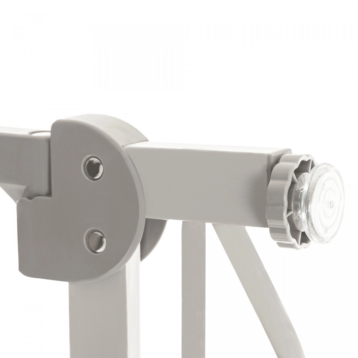 Funkcija samozaključavanja osigurava automatsko zatvaranje pregrade nakon njezina otvaranja, što je idealno za roditelje s punim rukama. Nakon otvaranja preko 90 stupnjeva, pregrada se automatski blokira. Zahvaljujući obostranom otvaranju upotreba je praktična u svakom prostoru.