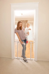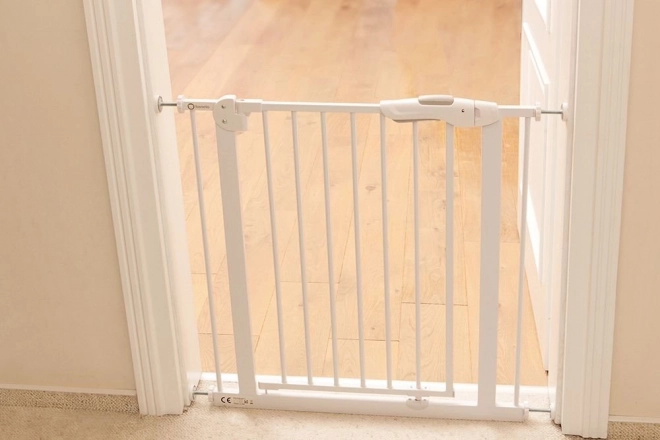 Ova dječja zaštitna pregrada idealno je rješenje za zaštitu vašeg djeteta kod kuće. Prikladna za montažu u vrata, hodnike i uz stepenice. Montaža ne zahtijeva bušenje, što znači da nećete oštetiti zidove ili okvire. Zahvaljujući sniženoj visini praga i sigurnom dvostrukom zaključavanju prolaz za odrasle je lak, ali siguran za malu djecu.