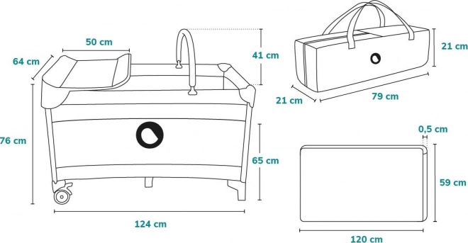 Bogata oprema uključuje previjalište s povišenim rubovima, praktični organizer za potrepštine, luk s platnenim igračkama i bočni ulaz s patentnim zatvaračem za samostalan prolaz djeteta. Pjenasti madrac 120 × 60 × 5 cm sa povećanom elastičnošću pruža udobnost pri spavanju i odmoru. Sigurnost dodatno osiguravaju brava protiv samosklapanja LockGuard i sukladnost s normom EN 716 potvrđena u laboratoriju SGS.