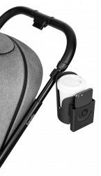 - Držač je opremljen univerzalnim sustavom pričvršćivanja 360° i stabilnom trakom na čičak, kojom ga pričvršćujete na bilo koju ručku kolica pod bilo kojim kutom.
