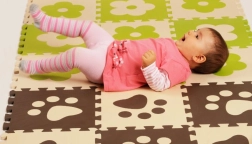Praktične pjenaste podne slagalice u bež-smeđoj izvedbi s motivom šapica stvaraju djeci ugodno i sigurno mjesto za igru. Zahvaljujući rebrastoj površini dijelovi se ne kližu, materijal je mekan, periv i bezopasan za zdravlje, a dodatno prigušuje buku i odlično izolira od hladnoće. Dimenzija dijela 29,5 × 29,5 cm, debljina 0,9 cm. Prikladno za djecu od 3 godine.