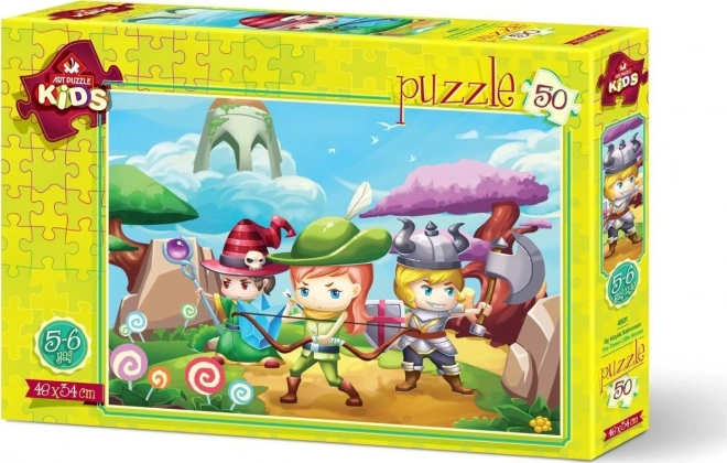 Otkrijte zabavu za najmlađe s kvalitetnom slagalicom od 50 dijelova koja razvija logičko razmišljanje, strpljenje i finu motoriku. Sličica „Tri mala junaka“ razveselit će djecu i roditelje, a nakon sastavljanja ima dimenzije približno 48 × 34 cm.