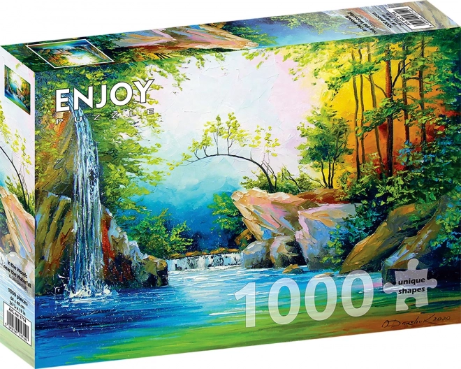 Otkrijte čaroliju prirode s puzzle ENJOY „U šumi kraj slapa“. Tisuću pažljivo izrezanih dijelova stvara harmoničnu sliku koja će razveseliti iskusne slagatelje i entuzijastične početnike. Idealno za mirne večeri i zajedničke trenutke s obitelji.