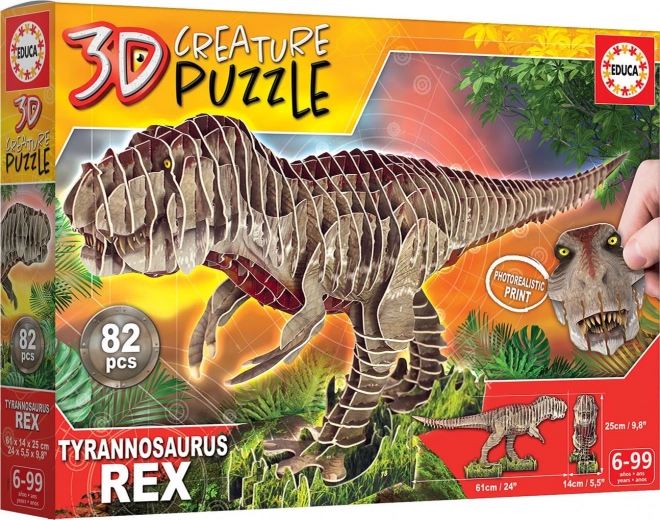 Sastavite vlastitu pretpovijesnu ikonu – detaljan 3D model T‑Rexa od kvalitetnog kartona marke EDUCA. Bez škara i ljepila, samo prema numeriranim dijelovima i slikovnim uputama. Fotorealističan tisak, čvrst karton i jednostavno slaganje bez ljepila potiču vještinu, maštu i koncentraciju. Gotov model mjeri približno 61 × 14 × 25 cm.