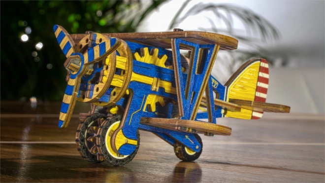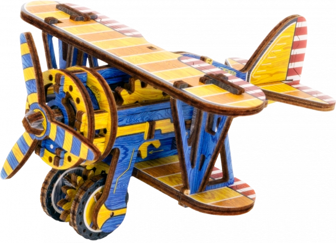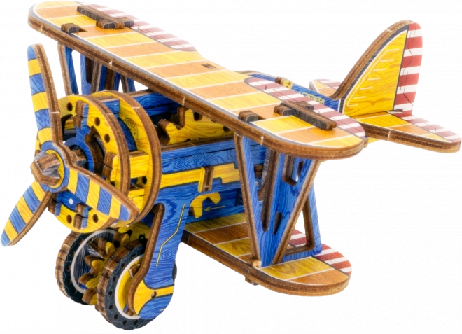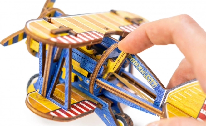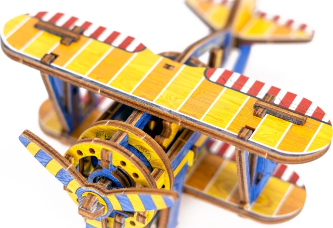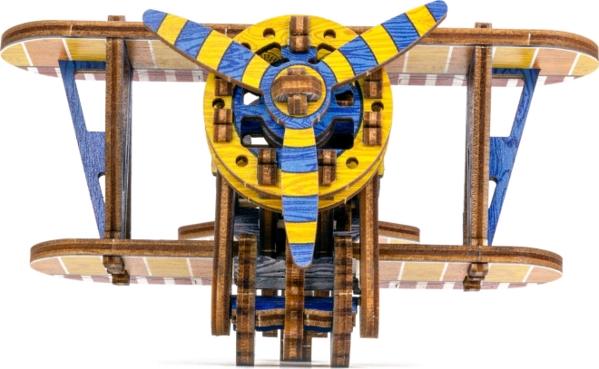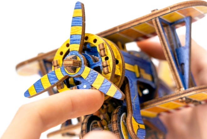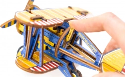 Limitirano izdanje 3D puzzli WOODEN CITY Dvokrilac spaja zabavu slaganja s pravim mehaničkim funkcijama. Zahvaljujući motoru na gumu s navojnim propelerom i zamašnjaku model se nakon dovršetka zaista pokreće. Kolor elementi izrađeni vrlo preciznim UV tiskom naglašavaju retro izgled i kolekcionarski karakter modela.