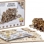 Drveni model Express snova idealan je poklon za zaljubljenike u svijet tračnica i ljubitelje mehaničkih mozgalica. Ova 3D slagalica osmišljena je tako da pruža sate zabave i učenja mehanike. Model se sastavlja bez upotrebe ljepila ili alata i izrađen je od ekoloških materijala, konkretno od kvalitetne brezove šperploče. Nakon sastavljanja možete u potpunosti uživati u njegovim mehaničkim funkcijama koje pokreće gumeni motor.