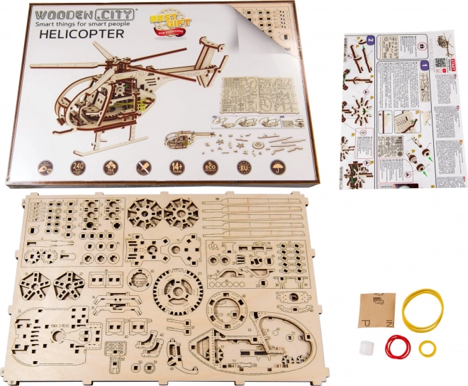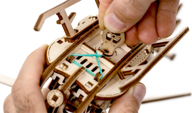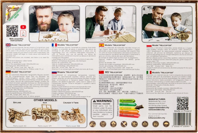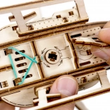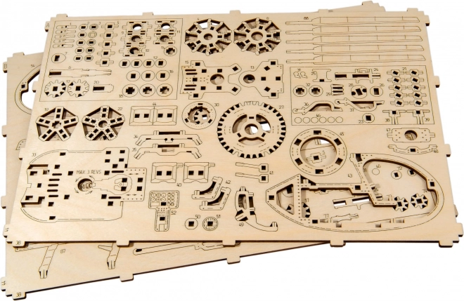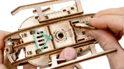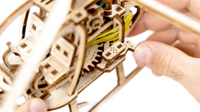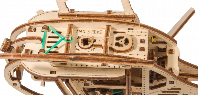 Izrađen od kvalitetne brezove šperploče, model nudi ekološku alternativu plastičnim igračkama. Ne zahtijeva ljepilo ni alate, što ga čini čistim i ekološkim projektom. Drvene puzzle sadrže gumene motore i zupčanike, zahvaljujući kojima model oživljava.