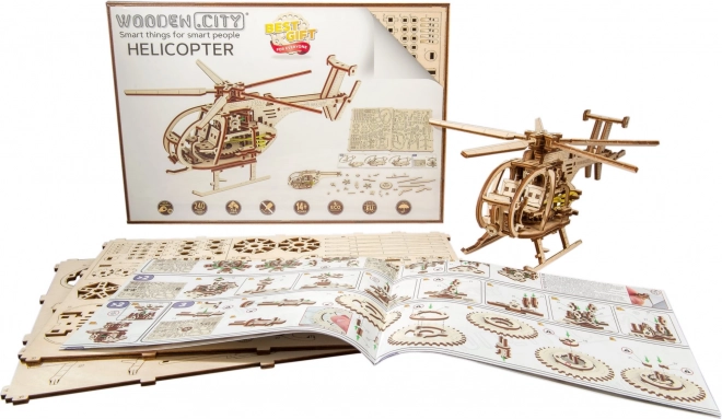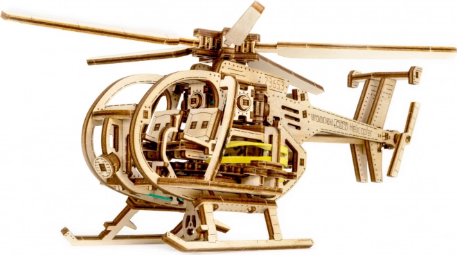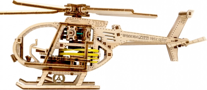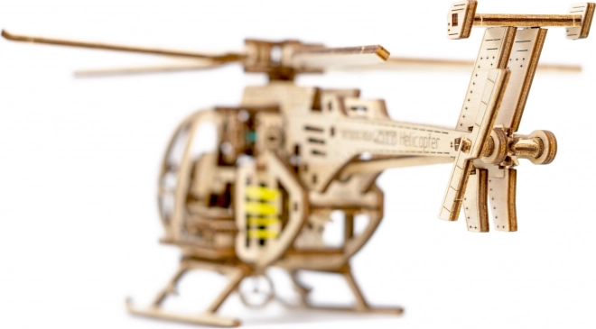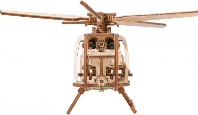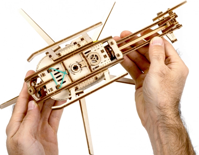 Funkcionalni drveni helikopter s rotirajućim lopaticama, koji imitira pravi model.