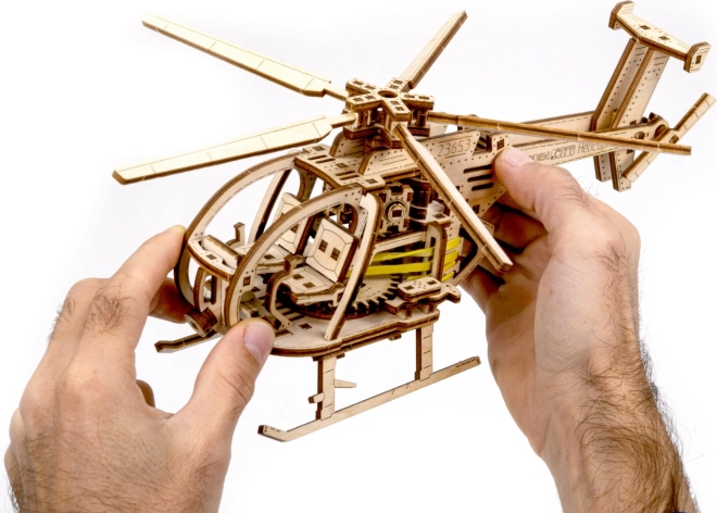 Doživite zabavno sastavljanje s ovim funkcionalnim mehaničkim modelom, koji oduševljava svojom detaljnom razrađenošću. Lopatice helikoptera se okreću zahvaljujući navijanju posebnim ključem. Ovaj model je vjerná kopija pravog helikoptera, čime se izdvaja među ostalim slagalicama.
