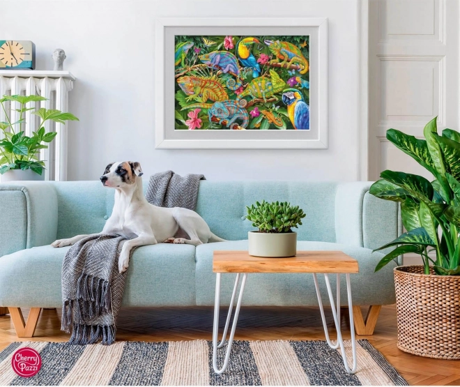Ovaj prekrasni puzzle s motivom kameleona idealan je za ljubitelje slaganja i prirode. Zahvaljujući 2000 komada nudi izazov za iskusne slagatelje puzzle. Gotova slagalica ima dimenzije 100 x 70 cm, što je dovoljno velik format da svaki detalj motiva dođe do izražaja. Uronite u svijet kameleona i uživajte u satima zabave i opuštanja s obitelji ili prijateljima.