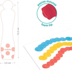 DJECO pjenaste boje s praktičnim spužvastim aplikatorom idealan su izbor za prvo kreativno stvaranje. Djeca jednostavno pritisnu i rade točkice, poteze i uzorke – bez kistova i bez nereda. Ergonomski oblikovane bočice pristaju i najmanjim dječjim ručicama te potiču prirodan hvat.