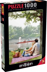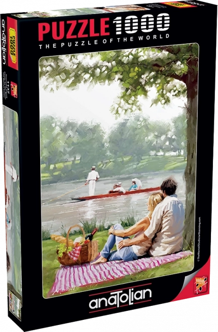 Puzzle Piknik uz rijeku nudi jedinstvenu zabavu s 1000 dijelova i praktičnim stalkom na poklopcu kutije kao uzorkom tijekom slaganja.