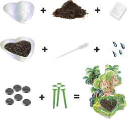 Kombinacija 3D slaganja i stvarnog uzgoja zadržat će djecu oduševljenom od prvog dijelića do prvih listića. Lončić u obliku srca postat će središte vašeg malog zelenog svijeta.